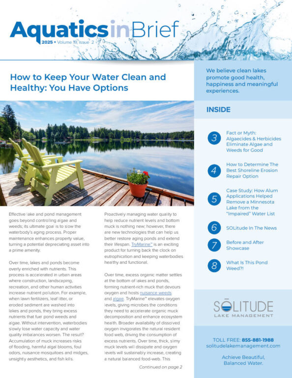 Our expert staff and trusted partners contribute articles to our quarterly educational newsletter to provide you with ongoing lake, pond and fisheries management knowledge, tips, and related industry news. If you’ve missed recent issues, check them out below!