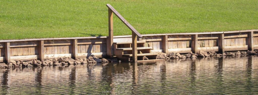 Solid vertical structures often used in waterbodies with heavy wave action or limited horizontal space.