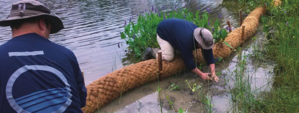 Furthermore, native beneficial vegetation can be directly planted into the system to cultivate a robust buffer around the water. In addition to further stabilizing shoreline sediment, vegetative buffers help support healthy water quality by filtering stormwater runoff.