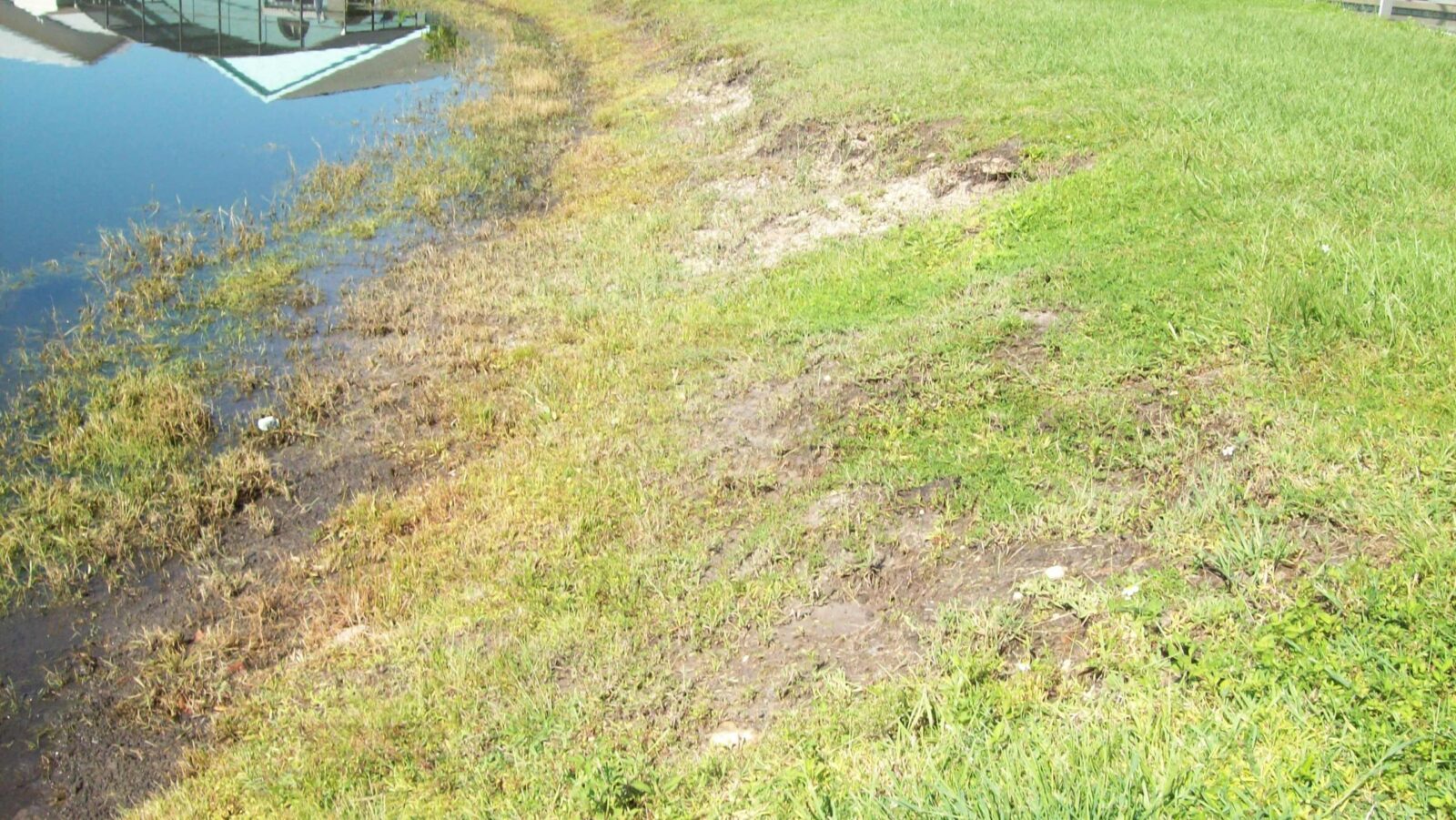 Shoreline erosion may present in different ways—some more noticeable than others. Signs can range from bare patches and small drop-offs to large slopes, sediment islands, and deep fissures in the earth. You might notice muck build-up and increased flooding during rainstorms. Water quality can also be affected by erosion; when water quality conditions are imbalanced, nuisance aquatic weeds and algae are more likely to develop.