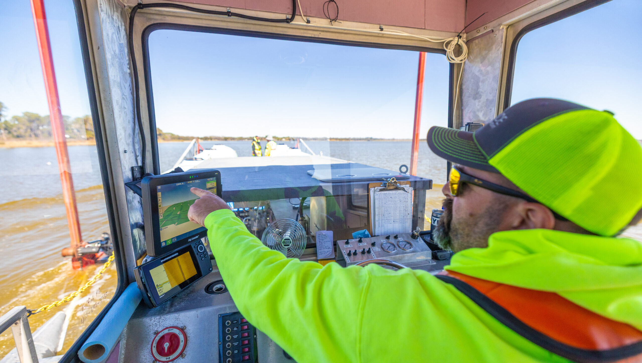 Computerized Flow Control: High-precision GPS and flow-control systems sync the injection pumps with the barge’s speed. If the boat slows down, the pump slows down, ensuring a perfectly uniform application rate across the entire treatment zone. This ensures there are no “gaps” in the application where internal loading can bypass the alum and get into the water column.